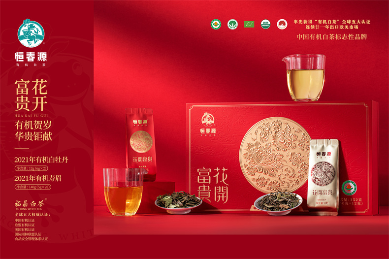 24版花開富貴·有機(jī)白茶 統(tǒng)一零售價(jià):398 元/盒 凈含量:152g(壽眉5g*28+牡丹6g*2) 壽眉原料:2021年一級(jí)有機(jī)壽眉 牡丹原料:2021年一級(jí)有機(jī)牡丹 裝箱量:10盒/件