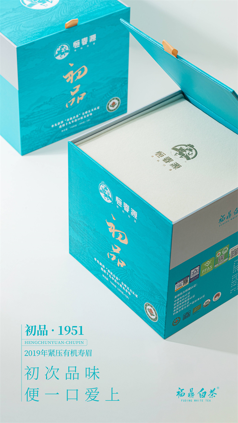 品名:初品.1951 統(tǒng)一零售價(jià):560元/盒 凈含量:300克 原料:2019年有機(jī)一級(jí)壽眉 裝箱量:16盒/件 品名:初品.1951(收藏版) 統(tǒng)一零售價(jià):2300元/盒 凈含量:300克×5餅 原料:2019年有機(jī)一級(jí)壽眉 裝箱量:4盒/件