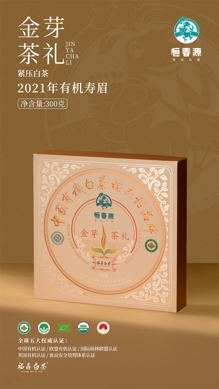 產(chǎn)品名稱:金芽茶禮·禮盒版 統(tǒng)一零售價(jià):430元 凈含量:300g 原料:有機(jī)一級(jí)壽眉 裝箱量:10盒/件 產(chǎn)品名稱:金芽茶禮提盒裝(緊壓白茶) 統(tǒng)一零售價(jià):2000元 凈含量:1500g 原料:有機(jī)一級(jí)壽眉 裝箱量:4提/件