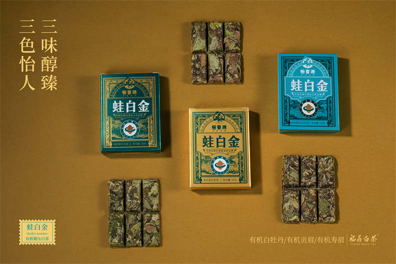 產(chǎn)品名稱(chēng):24版蛙白金·精裝版 零售價(jià): 850元/盒 凈含量:360克/盒 原料:2021年有機(jī)牡丹60g(30g*2)、2021年有機(jī)貢眉120g(30g*4)、2021年有機(jī)壽眉180g(30g*6) 裝箱量:10盒/件