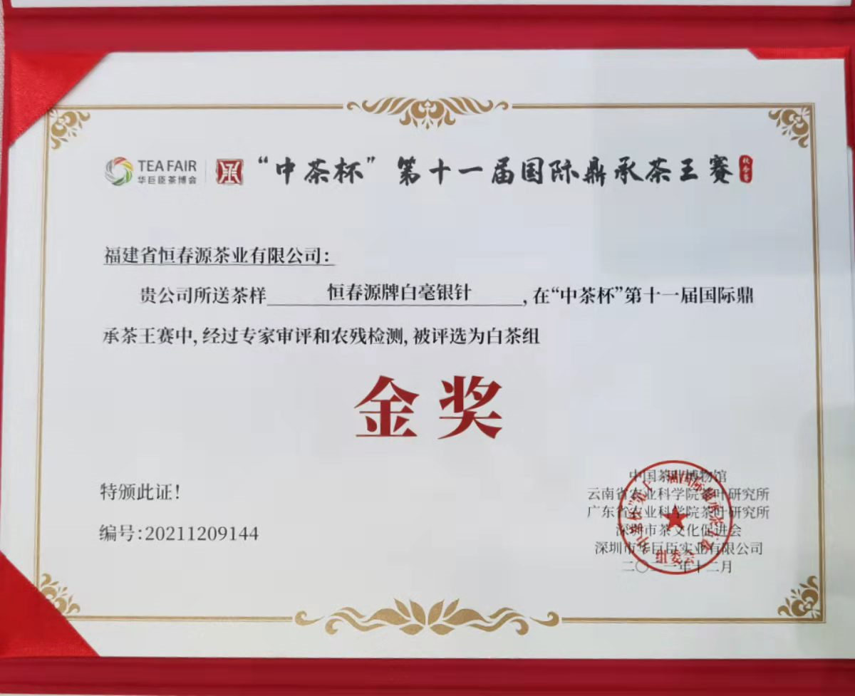 “中茶杯“第十一屆國(guó)際鼎承茶王賽金獎(jiǎng)