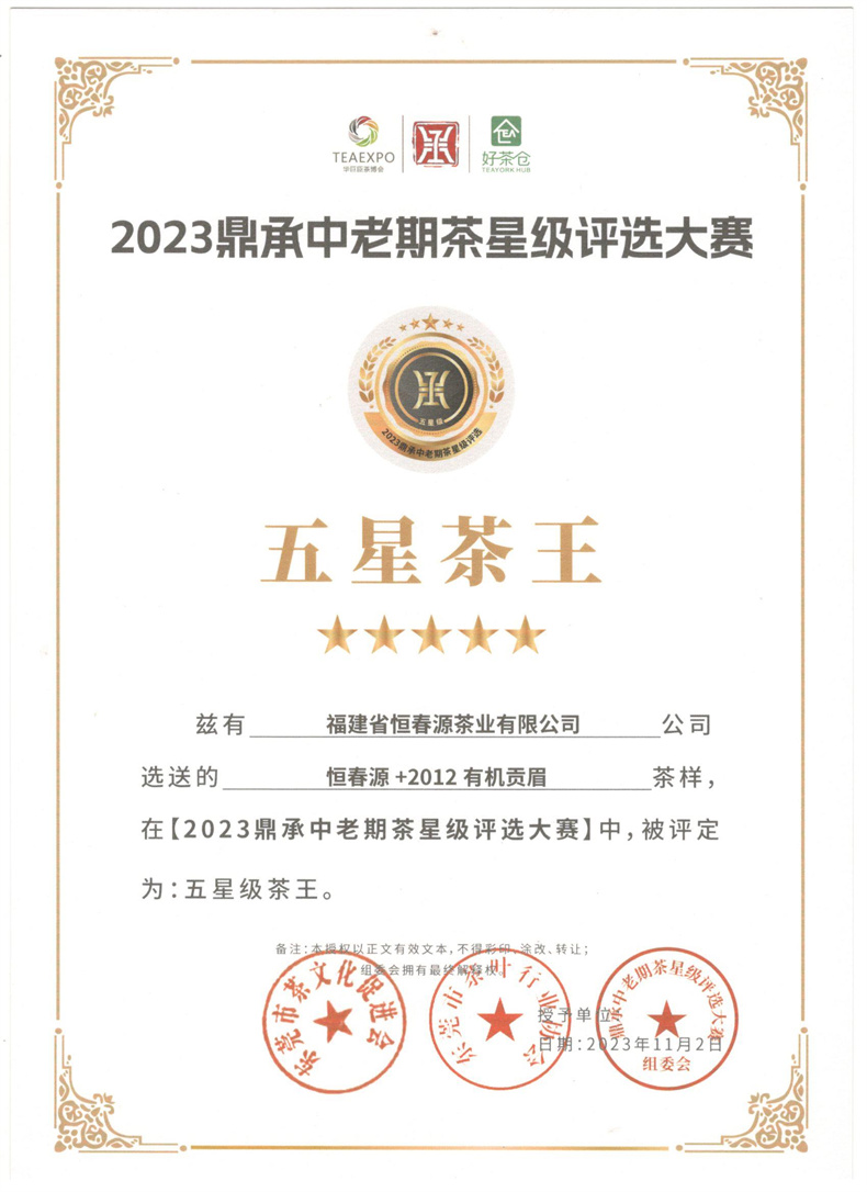 2023鼎承中老期茶星級評選大賽五星茶王