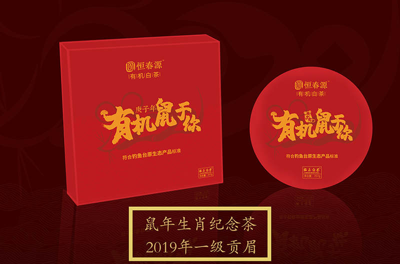 2019年12月恒春源茶業(yè)出品了此款紀念茶,為紀念鼠年來臨,特出這款“有機 鼠于你”鼠年生肖紀念產(chǎn)品,限量1000餅(已售罄)。