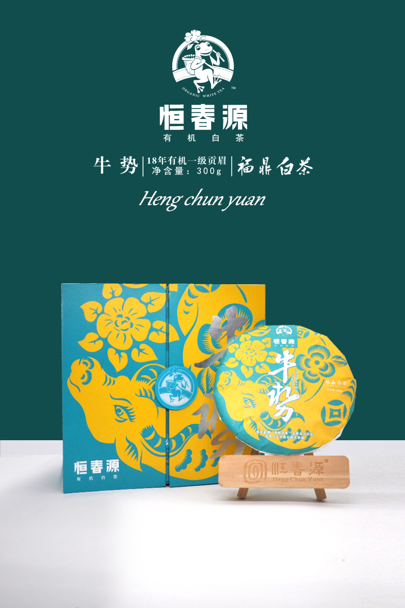 2020年12月恒春源茶業(yè)出品了此款紀念茶,為紀念牛年來臨,特出這款“牛勢”牛年生肖紀念產(chǎn)品,限量5000餅(已售罄)。