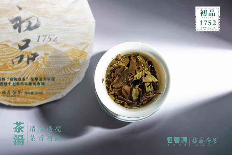 產(chǎn)品名稱:初品1752(緊壓白茶) 全國(guó)統(tǒng)一零售價(jià):920元/餅 配 料:2017年有機(jī)一級(jí)壽眉 凈 含 量:300g 生產(chǎn)日期:見(jiàn)噴碼 保 質(zhì) 期:適宜長(zhǎng)期保存,十五年之內(nèi)飲用最佳 貯存方法:密封、避光、防潮、防異味
