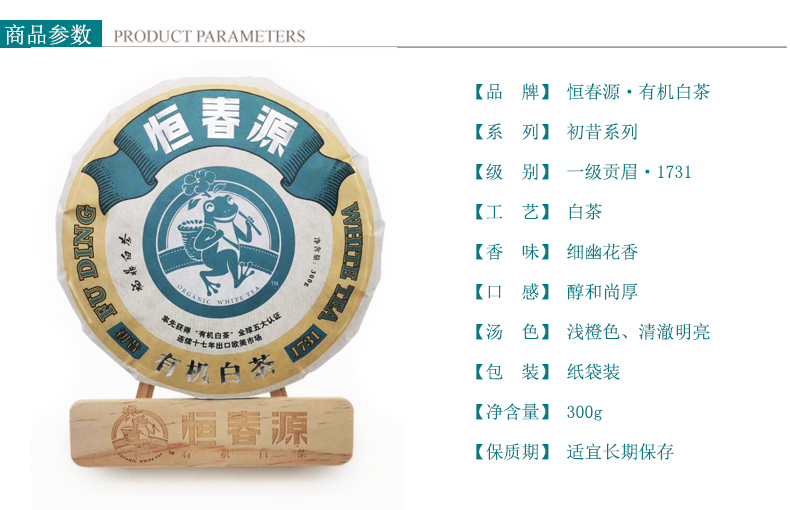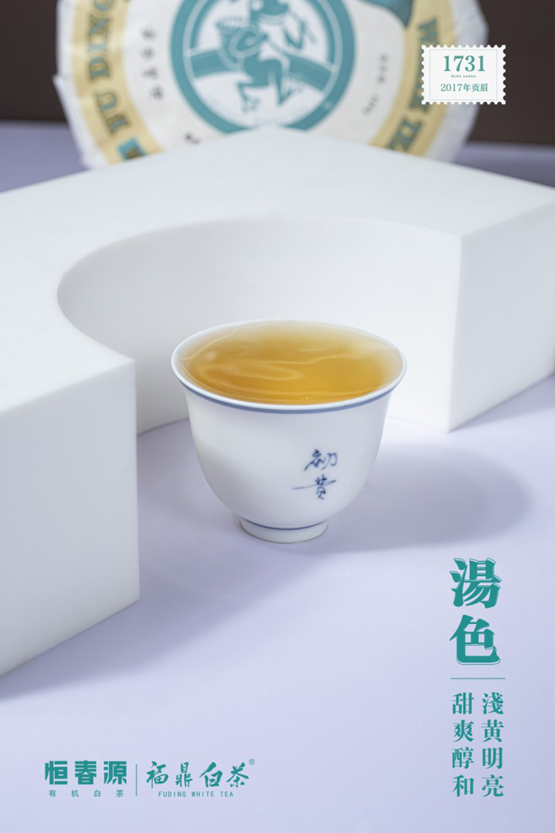 產(chǎn)品名稱:初昔1731(緊壓白茶) 全國(guó)統(tǒng)一零售價(jià):1260元/餅 配 料:2017年一級(jí)貢眉 凈 含 量:300g 生產(chǎn)日期:見(jiàn)噴碼 保 質(zhì) 期:適宜長(zhǎng)期保存,十五年之內(nèi)飲用最佳 貯存方法:密封、避光、防潮、防異味