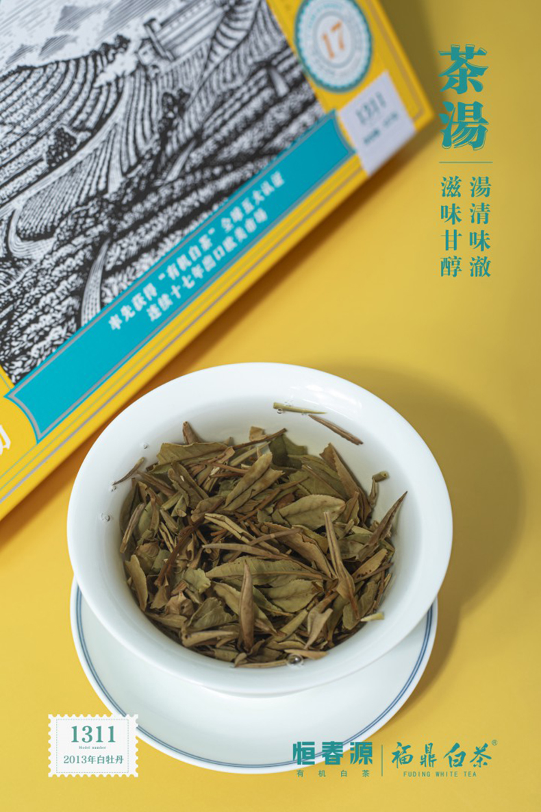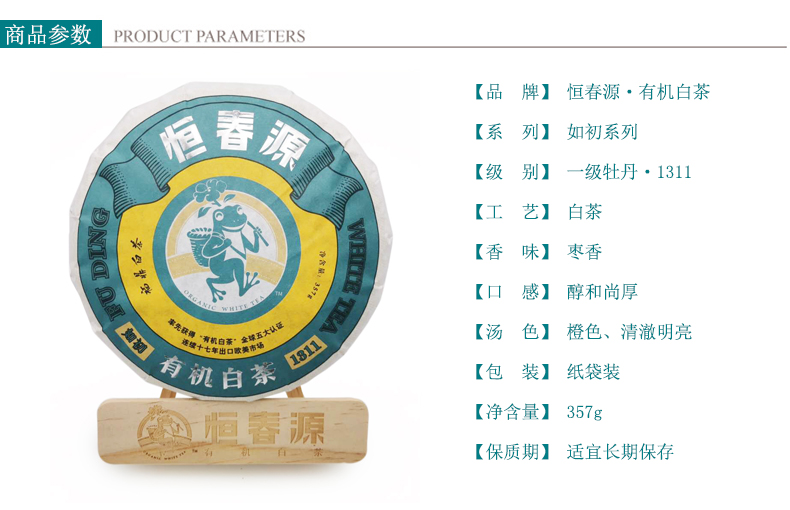 產(chǎn)品名稱:如初1311(緊壓白茶) 全國統(tǒng)一零售價:6400元/餅 配 料:2013年一級白牡丹 凈 含 量:357g 生產(chǎn)日期:見噴碼 保 質(zhì) 期:適宜長期保存,十五年之內(nèi)飲用最佳 貯存方法:密封、避光、防潮、防異味